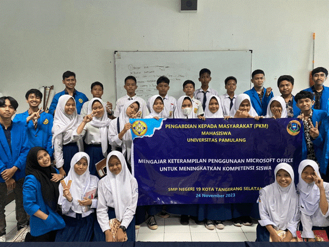 Dalam rangka memenuhi tanggung jawab Tri Dharma Perguruan Tinggi, Jurusan Teknik Informatika Fakultas Ilmu Komputer Universitas Pamulang telah bekerjasama dengan SMPN 19 TANGSERANG SELATAN untuk menyelenggarakan kegiatan “Pengabdian Kepada Masyarakat” pada Kamis, 23 November 2023, Kegiatan ini sukses berkat dukungan dari pihak sekolah SMPN 19 TANGSERANG SELATAN dan dosen pembimbing kami.