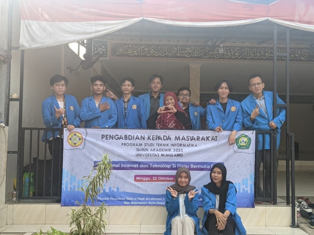 Dengan bermodalkan latar belakang masalah tersebut beberapa Mahasiswa/i Program Studi Teknik Informatika UNPAM ditemani oleh satu dosen pembimbing melakukan kegiatan Pengabdian Kepada Masyarakat berupa “Sosialisasi Mengenal Internet dan Teknologi si Pisau Bermata Dua”. Kegiatan sosialisasi ini dilaksanakan di Aula Pondok Pesantren Bahrul Hadi Arrahmani yang berlokasi di Jl. Serua Bulak Raya No.48, Pd.Petir, Bojongsari, Depok, Jawa Barat, yang diikuti oleh seluruh Santri/Santriwati dan Pengurus Pondok Pesantren Bahrul Hadi Arrahmani pada hari Minggu, 22 Oktober 2023.