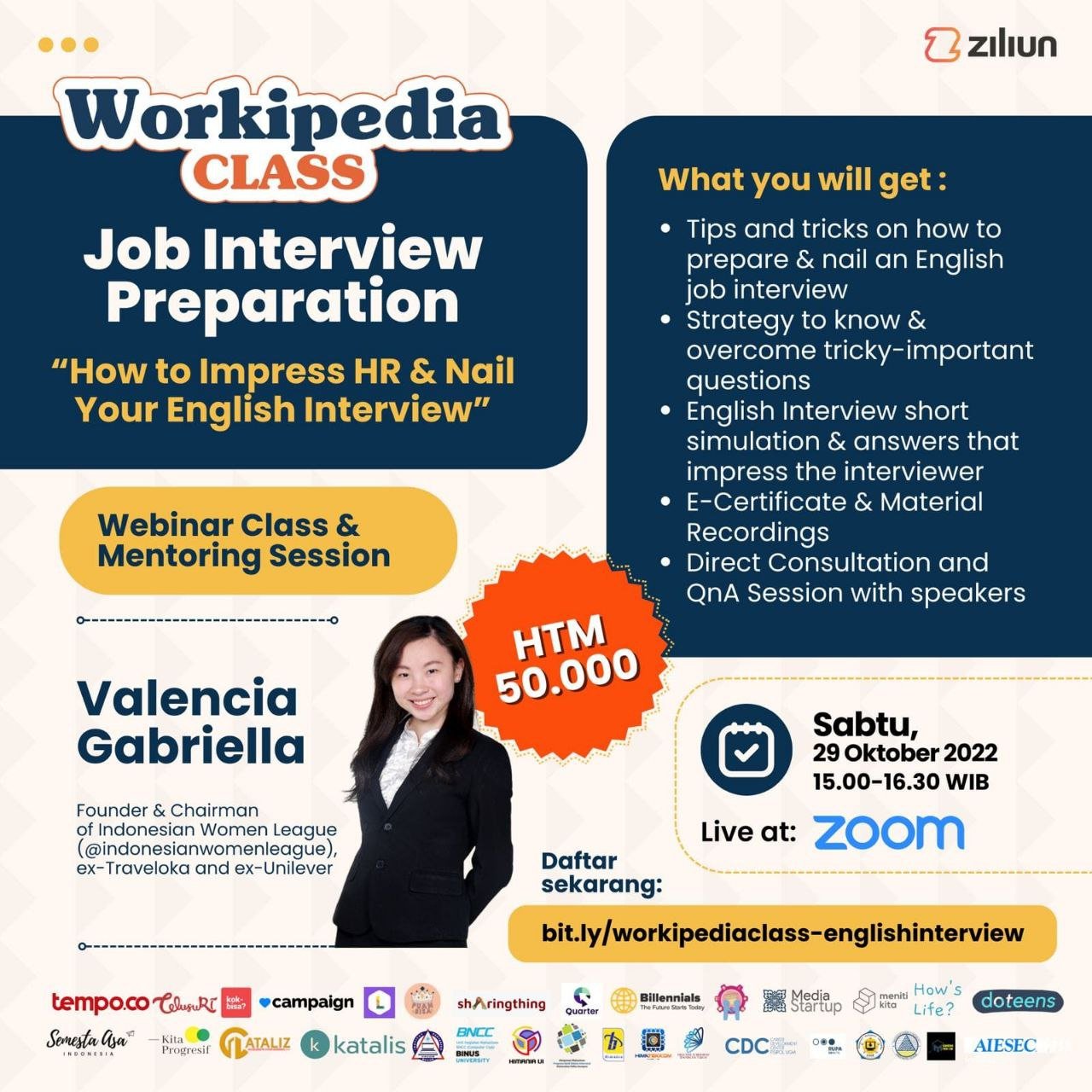 Yuk, daftarkan diri kalian sekarang juga di bit.ly/workipediaclass-englishinterview atau bisa juga klik link yang ada di bio Ziliun! Jangan sampe ketinggalan, ya!