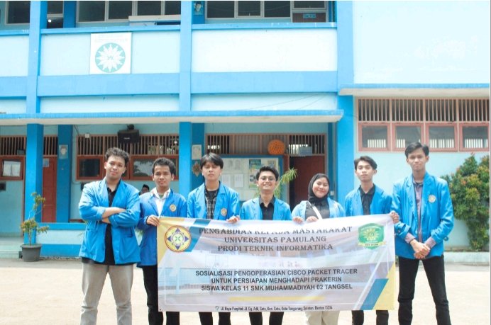 Mahasiswa dari universitas pamulang Mengadakan kegiatan Pengabdian Kepada Masyrakat (PKM) dengan tema “Sosialisasi Pengoperasian Cisco Packet Tracer Untuk Persiapan Menghadapi Prakerin Siswa Kelas 11 SMK Muhammadiyah 02 Tangerang Selatan” . kegiatan PKM tersebut bertujuan untuk cara pengeoperasian Cisco Packet Tracer di SMK Muhammadiyah 02 Tangerang Selatan untuk menghadapi prakerin (Praktek kerja industri).