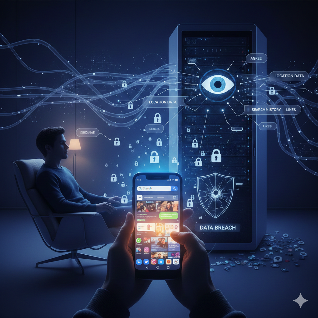 Saya percaya bahwa setiap kemudahan yang kita nikmati saat ini sebenarnya dibayar dengan data pribadi kita. Tanpa sadar, kita menyerahkan banyak informasi tentang diri kita sendiri—apa yang kita suka, apa yang kita cari, bahkan di mana kita berada. Kita sering menekan tombol “setuju” tanpa membaca syaratnya, hanya agar bisa segera menggunakan aplikasinya. Bagi saya, ini seperti menyerahkan kunci rumah kepada orang lain hanya karena ingin masuk lebih cepat.