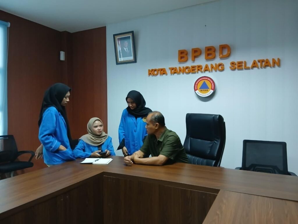 Mahasiswa melakukan observasi pasca bencana di BPBD Kota Tangerang Selatan.