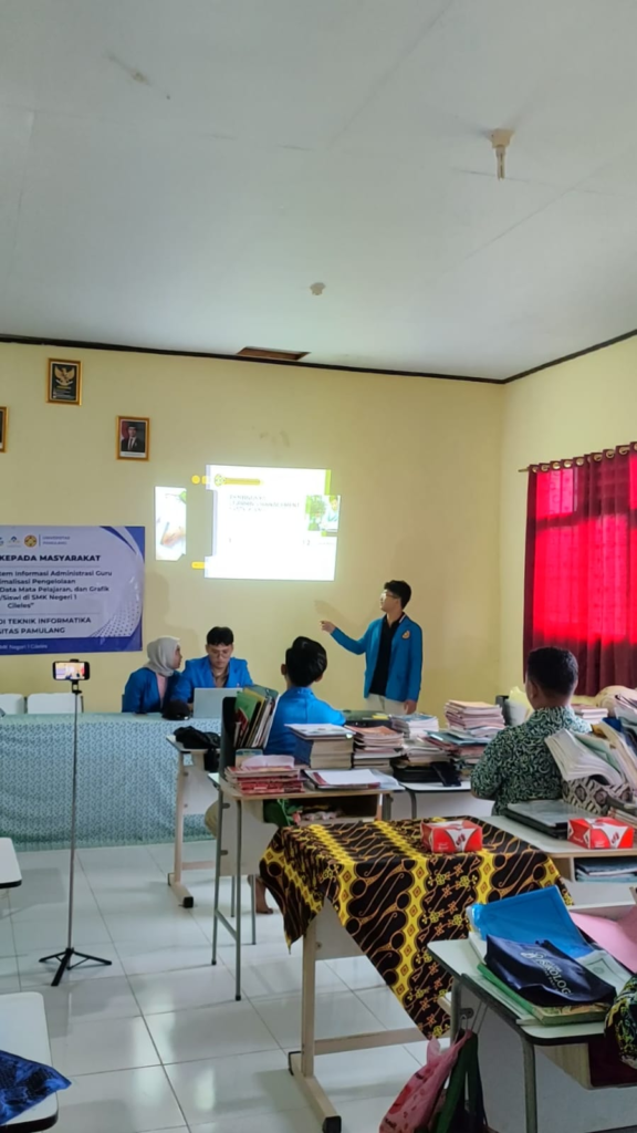 Kelompok mahasiswa Program Studi Teknik Informatika Semester 5 Universitas Pamulang melaksanakan kegiatan Pengabdian Kepada Masyarakat (PKM) di SMKN 1 Cileles, dengan mengusung tema “Pengembangan Sistem Informasi Administrasi Guru untuk Optimalisasi Pengelolaan Absensi Kehadiran, Data Mata Pelajaran, dan Grafik Nilai Siswa.”