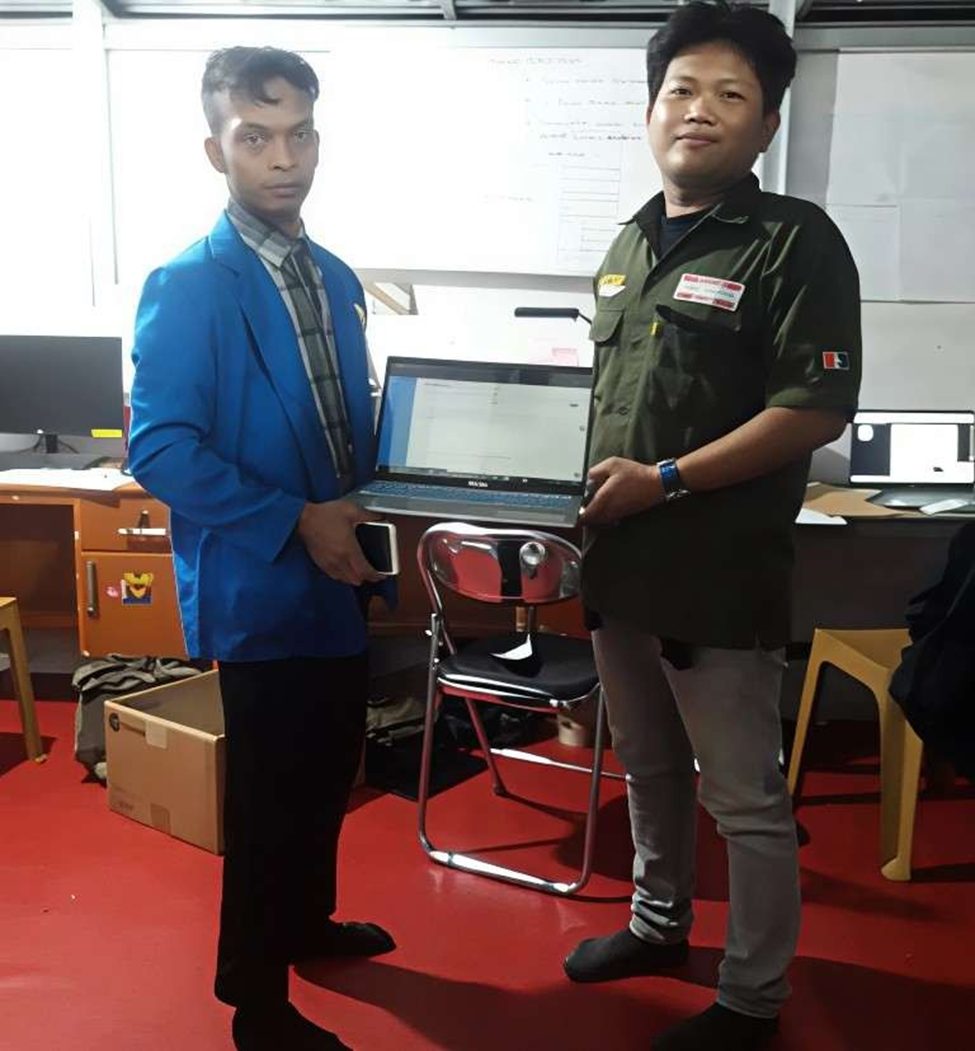 Gambar 2. Setelah proses pengembangan selesai, penulis bersama Abizhar Fahrezi selaku pembimbing kerja praktik dari PT. Riz Development Digital Solutions melakukan presentasi dan serah terima website yang telah selesai dibuat. Dalam foto ini, penulis dan pembimbing terlihat memegang laptop yang menampilkan website tersebut sebagai simbol keberhasilan proyek kerja praktik ini. Kegiatan ini merupakan puncak dari seluruh rangkaian aktivitas kerja praktik, menandakan bahwa tujuan yang telah ditetapkan telah tercapai dengan baik.