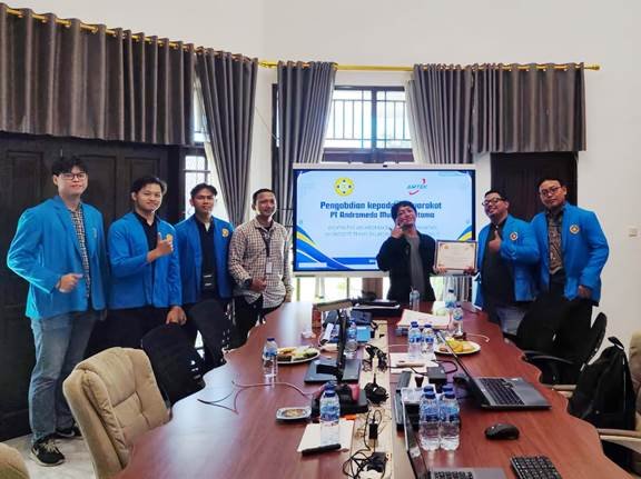 Kami mengucapkan terima kasih kepada PT Andromeda Multi Teknotama yang telah memberikan kesempatan dan dukungan dalam pelaksanaan kegiatan ini. Terima kasih juga kepada Bapak Ahmad, S.Kom., M.Kom. selaku dosen pembimbing atas arahan dan bimbingannya, serta kepada seluruh tim PKM yang telah berkontribusi dengan penuh semangat. Semoga kegiatan ini memberikan manfaat yang nyata bagi perusahaan mitra dan menjadi pengalaman berharga bagi kami sebagai mahasiswa.