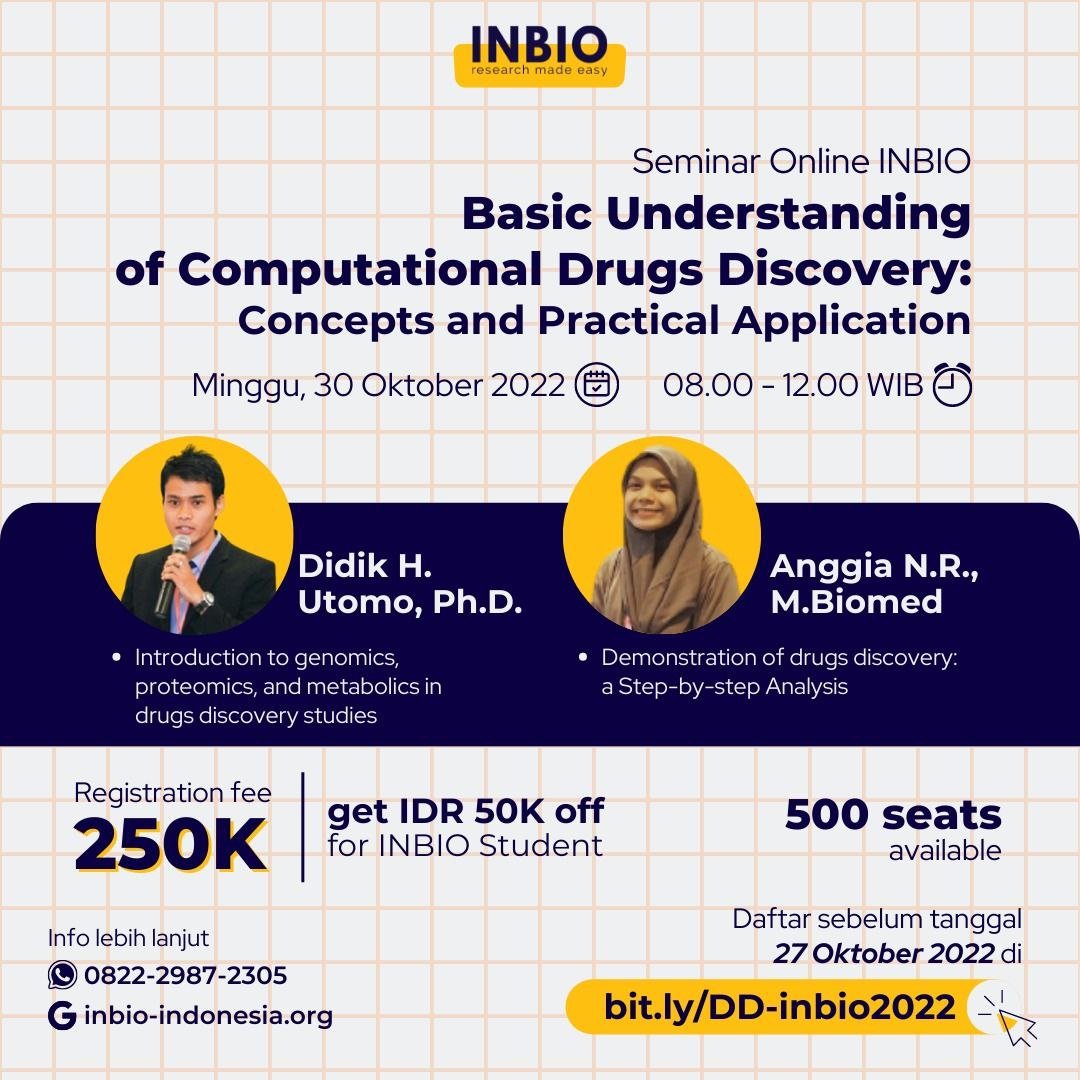 Untuk sesi ini, kamu cuma perlu membayar Rp 250.000 dan kita akan mengupas tuntas tentang Computational Drugs Discovery selama 4 jam bersama Didik H.Utomo, Ph.D dan Anggia N.R., M.Biomed
