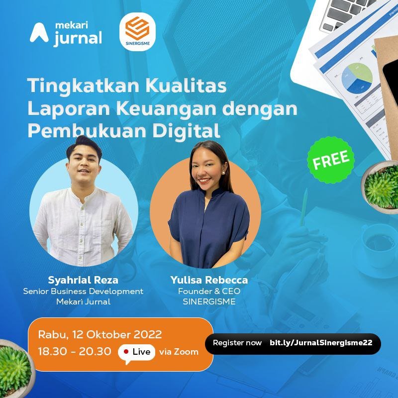 Nah, Sinergisme berkolaborasi dengan Jurnal By Mekari mengadakan webinar Tingkatkan Kualitas Laporan Keuangan dengan Pembukuan Digital untuk kamu yang ingin belajar pentingnya laporan keuangan dan efisiensi bisnis dengan menggunakan pembukuan digital.
