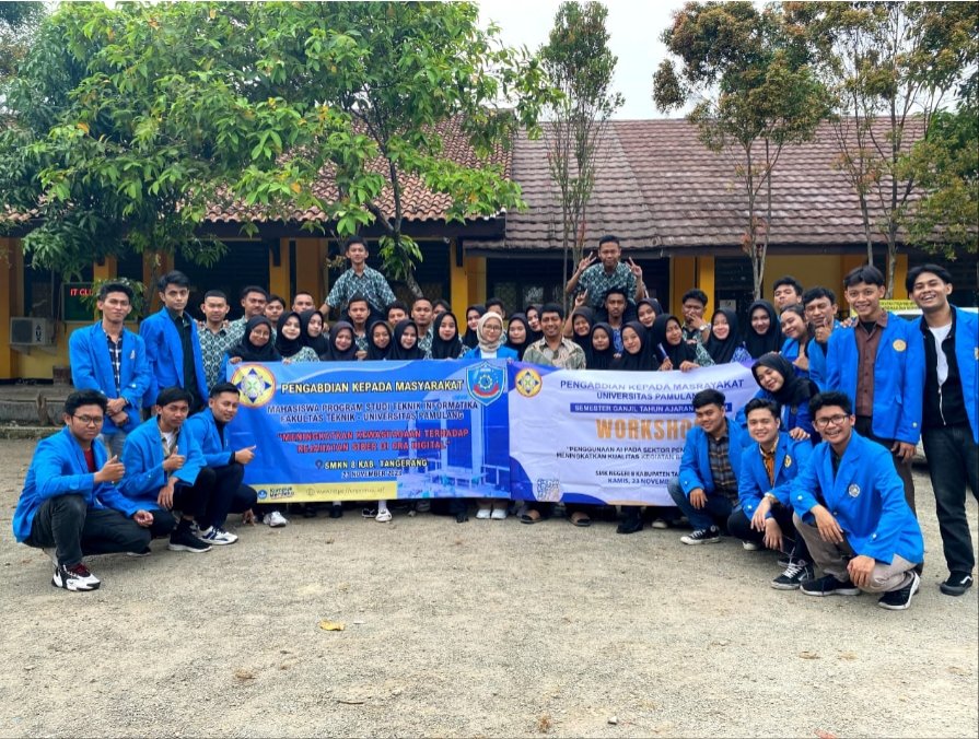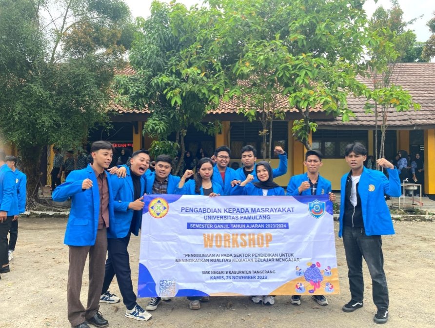 Memperkenalkan penggunaan Teknologi Artificial Intelligence kepada Siswa-siswi SMK Negeri 8 Kabupaten Tangerang, dari Sejarah terciptanya AI yang sudah lama terlihat hingga penerapan di dunia industry yang saat ini sudah kita rasakan, adapun dampak-dampak dari penggunaan teknologi ini juga kami berikan guna menghindari ketergantungan berlebih pada teknologi super canggih ini. Ini dapat membantu mereka menjadi lebih terampil dalam penggunaan teknologi informasi di era yang serba digital seperti sekarang ini. Melalui Workshop terkait AI yang kami adakan ini bertujuan untuk mendekatkan pengaruh positif dan menjauhkan pengaruh negatif yang sudah terjadi dimana-mana, terlebih lagi sekolah SMK Negeri 8 Kabupaten Tangerang ini berada di pelosok desa, sehingga sangat minim untuk mereka menjangkau berita terkait AI yang sedang booming ini.